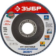 Шлифовальный круг ЗУБР "Эксперт" лепестковый, торцевой, P80, 115х22,2мм 36595-115-80