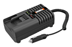 Автомобильное зарядное устройство WORX WA3765  20В 2A питается от автомобильной сети 11-26В, что позволяет зарядить универсальный аккумулятор WORX Powershare 20В вдали от электросети или прямо в дороге.