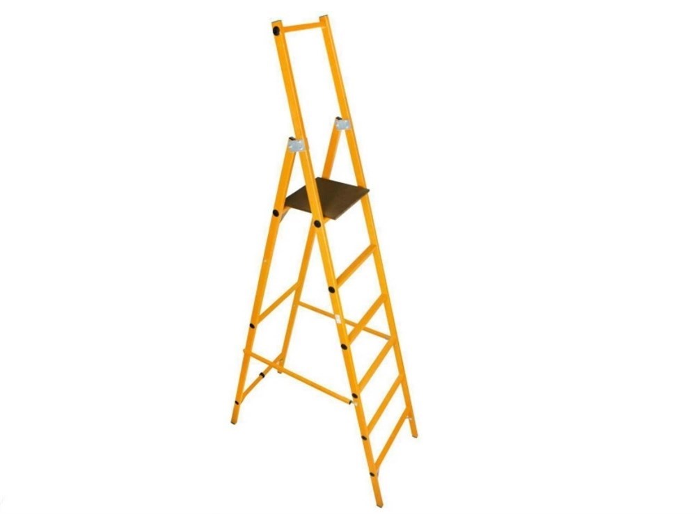 Диэлектрическая стремянка ЗЭП 2 ступени ССС-1,5Ш-42М - наиболее традиционный и самый распространенный вид стремянок. Проста и удобна в эксплуатации. Имеет увеличенную ширину ступени до 95 мм. Рабочая площадка имеет фиксатор из нержавеющей стали. Может использоваться как внутри помещений, так и на открытом воздухе, в суровых климатических условиях. Для изготовления тетивы используется диэлектрический стекловолоконный профиль прямоугольного сечения. На верхних концах тетив установлены пластиковые (ПВД/ПНД) заглушки, на нижних – противоскользящие эластополимерные опоры. Нижняя ступень имеет дополнительное усиление в виде металлических распорок, что повышает прочность конструкции. Ступени изготовлены из профиля 36х26 мм с противоскользящими ребрами. Стремянка оснащена металлическими оконцевателями для работы на мягком грунте
