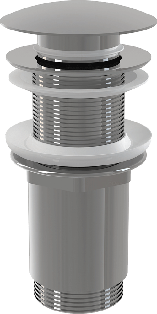 Донный клапан для умывальника AlcaPlast Click/clack 5/4", цельнометаллический без перелива и большой заглушкой A395 предназначен для пластиковых и стеклянных раковин без перелива.
