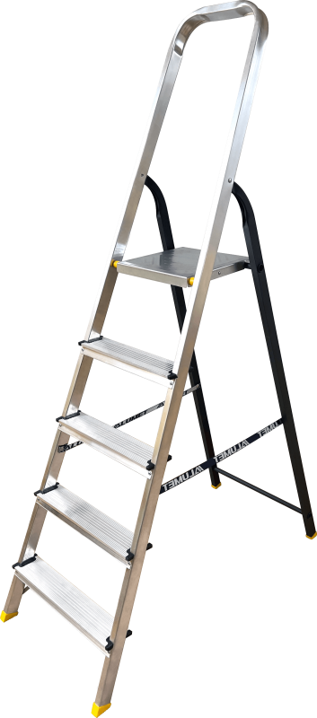 - Тетива передней ноги и ступени стремянки изготовлены из высокопрочного алюминиевого профиля, задняя нога – из стального профиля, покрашенного