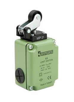 Концевой выключатель EMAS L1K13MIP211 быстрого переключения, 1-но направленный, со стальной консолью и пластмассовым роликом Ф22мм (1НО+1НЗ) предназначен для коммутации электрических цепей управления переменного и постоянного тока под воздействием управляющих упоров в определенных точках пути контролируемого объекта.