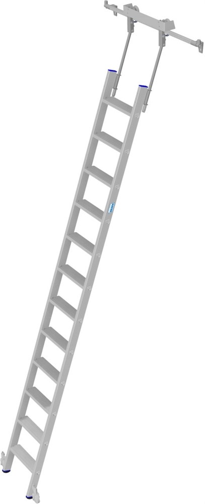 Стеллажная лестница Krause Stabilo трубчатая шина, 12 ступеней 819376 - это алюминиевая стеллажная лестница со встроенным блоком роликов для круглой шины (Ø 30 мм).