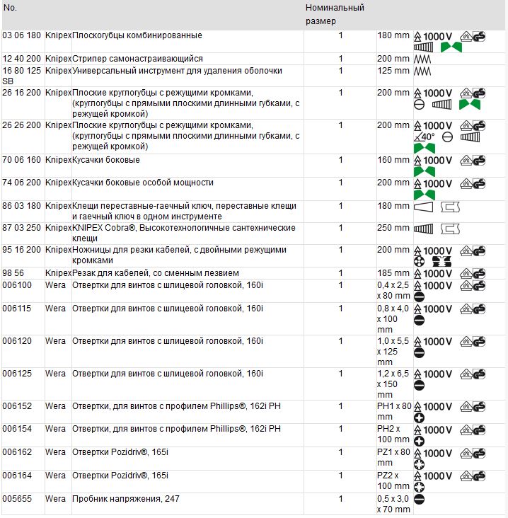 - Укомплектован 20 инструментами известных производителей, частично испытанными на электробезопасность по стандарту DIN EN 60 900