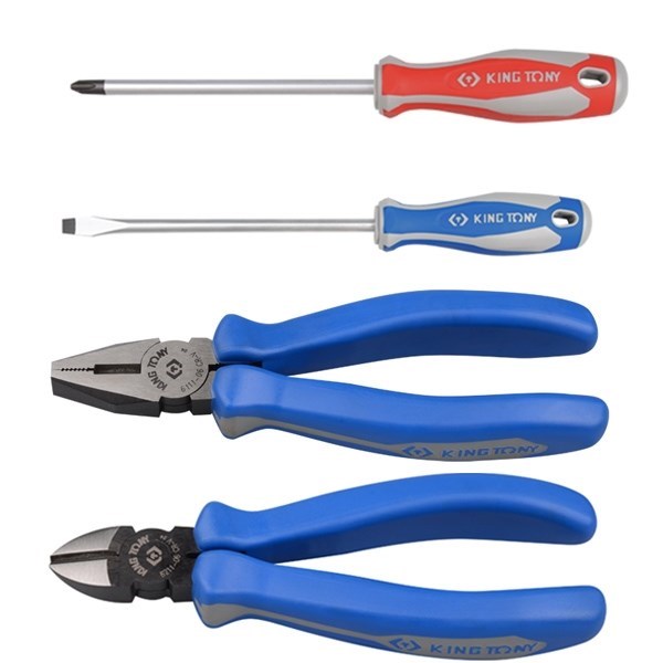 Набор пассатижей, бокорезов и отверток King Tony с штопором для бутылок, 6 предметов P90006MR01 включает в себя универсальные и наиболее часто используемые в доме, гараже, частной мастерской и в промышленном производстве инструменты. Сфера применения комплектующих - монтаж и демонтаж болтов, гаек и шурупов, перекусывание кабелей, гибка металлических скоб.
