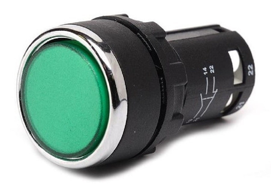 Нажимная моноблочная кнопка EMAS 22 мм, IP 40 (1НО) зеленая MB100DY