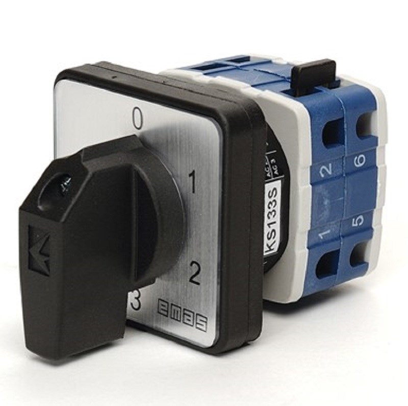 Однофазный многоступенчатый переключатель EMAS (0-3), 16А PSA016KS133S представляет собой механическое устройство без собственного потребления электроэнергии и предназначен для установки в качестве коммутационных аппаратов в электрических цепях. Также может использоваться как главный выключатель или групповой переключатель для управления приводами на основе одно-и трехфазных двигателей, переключения с требуемой программой коммутации цепей управления, сигнализации, в измерительных цепях. Используется в электрических цепях переменного тока напряжением от 220 до 400 В.