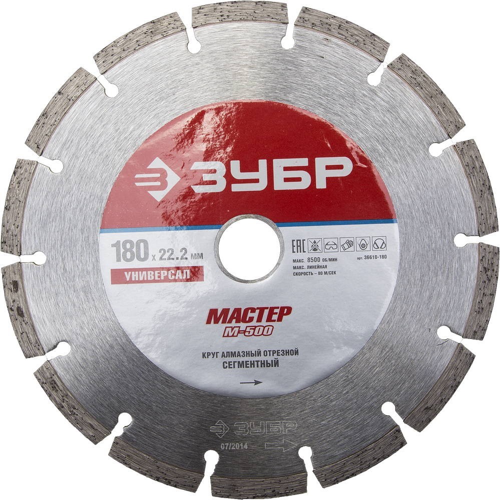 Отрезной диск Зубр "Мастер" алмазный, сегментный, 22,2х180мм 36610-180 имеет исключительно высокий уровень качества гарантирован комплексной системой контроля всего производственного процесса. Применяется на углошлифовальных машинах для резки: бетона, бордюрного камня, облицовочного кирпича, декоративной брусчатки, тротуарной плитки. Особая сегментная форма режущей кромки позволяет быстро и эффективно осуществлять резы в литых и прессованных абразивных материалах. Длительный срок службы. Воздушное охлаждение.