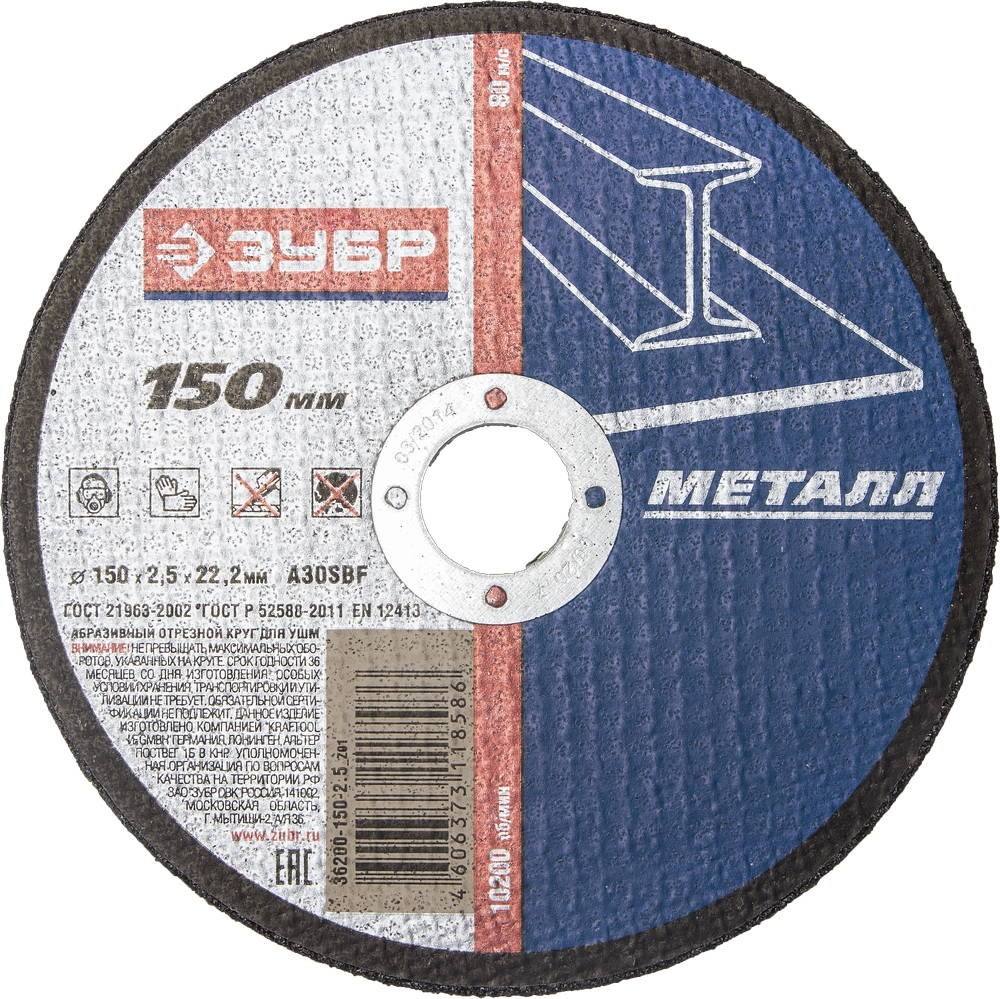 Отрезной круг Зубр абразивный, 150х2,5х22,2мм 36200-150-2.5_z01 обеспечивает работу с высокой производительностью и безопасностью, обладает большим ресурсом, имеет промышленное назначение, изготовлен в соответствии с требованиями ГОСТ 21963-2002. Производство абразивных отрезных кругов «ЗУБР» осуществляется на современных полностью автоматизированных линиях. Обладает высокой режущей способностью и имеет максимально возможный в своем классе рабочий ресурс. Изготавливается из компонентов и связующих материалов с высокой степенью очистки. Каждый круг проходит стопроцентный контроль качества. Многослойное армирование бакелитовой связки полиамидными сетками обеспечивает прочность круга и безопасность в работе. Режущие элементы абразивного круга по металлу и нержавеющей стали – кристаллы оксида алюминия.