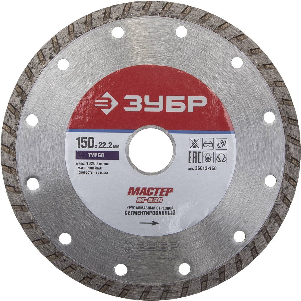 Отрезной круг Зубр "Мастер-Турбо" алмазный, сегментный, 22,2х150мм 36613-150 имеет исключительно высокий уровень качества гарантирован комплексной системой контроля всего производственного процесса. Применяется на углошлифовальных машинах для резки: бетона, бордюрного камня, облицовочного кирпича, декоративной брусчатки, тротуарной плитки. Особая сегментированная форма вращающейся режущей кромки для превосходной производительности и точных пропилов без сколов. Воздушное охлаждение.