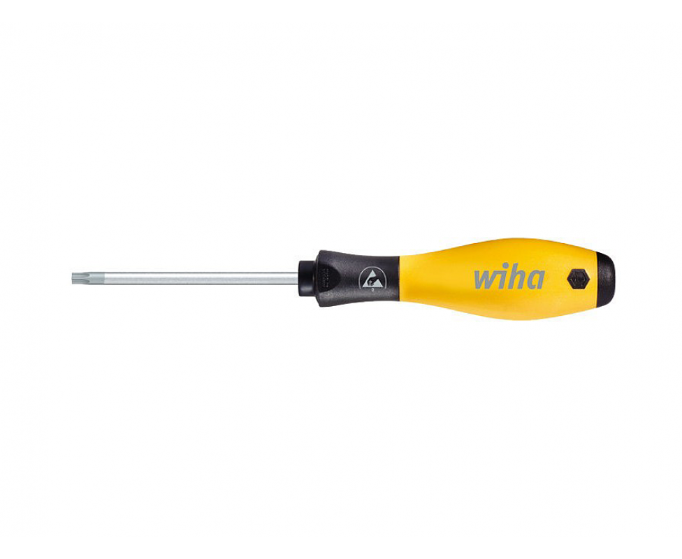 Отвертка-звездочка Wiha SoftFinish ESD TORX 362ESD T20 x 100 27147 - антистатическая отвертка с профилем TORX с круглым жалом из высококачественной легированной стали и многокомпонентной рукояткой. Предназначена для работ с деталями, где требуется отвод электростатического разряда.