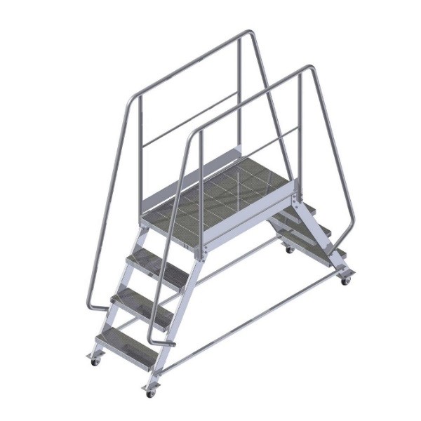 Переходный мостик на колесах ALUR МП-0,54х1,5х1,0К обеспечивает безопасный переход над конвейерными лентами, используется для обслуживания разнообразного оснащения на складах, в магазинах, на производстве.