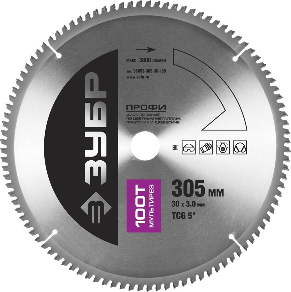 Пильный диск по алюминию Зубр Профессионал Мультирез 305x30мм, 100Т 36853-305-30-100