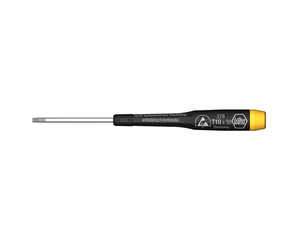 Прецизионная отвертка-звездочка Wiha Precision ESD TORX MagicSpring 278R T7x40 27749 - антистатическая отвертка для винтов TORX с удерживающей пружиной MagicSpring в наконечнике, жалом из высококачественной легированной стали с диссипативной рукояткой и крутящимся колпачком. Предназначена для точных работ с деталями, где требуется отвод электростатического разряда.