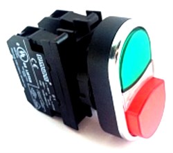 Сдвоенная нажимная кнопка EMAS красно-зеленая выступающая (1НО+1НЗ) с блоком подсветки B132K21KY