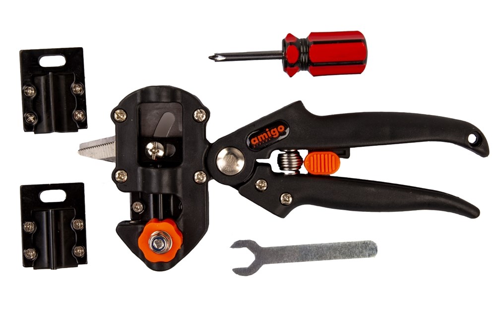 • Комплектация: секатор с тремя лезвиями, отвертка, ключ.
