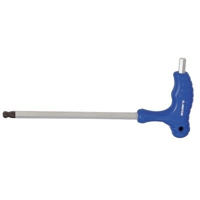 Конструкция данного ключа имеет несколько особенностей. Форма ключа Г-образная, имеется две рабочих части одинакового размера, короткая и длинная, которые можно использовать в зависимости от ситуации. Также предусмотрена эргономичная пластиковая ручка с выемками под пальцы, которая позволяет прочно и удобно удерживать ключ во время работы. Длинная часть шестигранника оснащена шаровым наконечником, что расширяет сферу применения ключа, позволяя выкручивать винты под углом и в труднодоступных местах.
