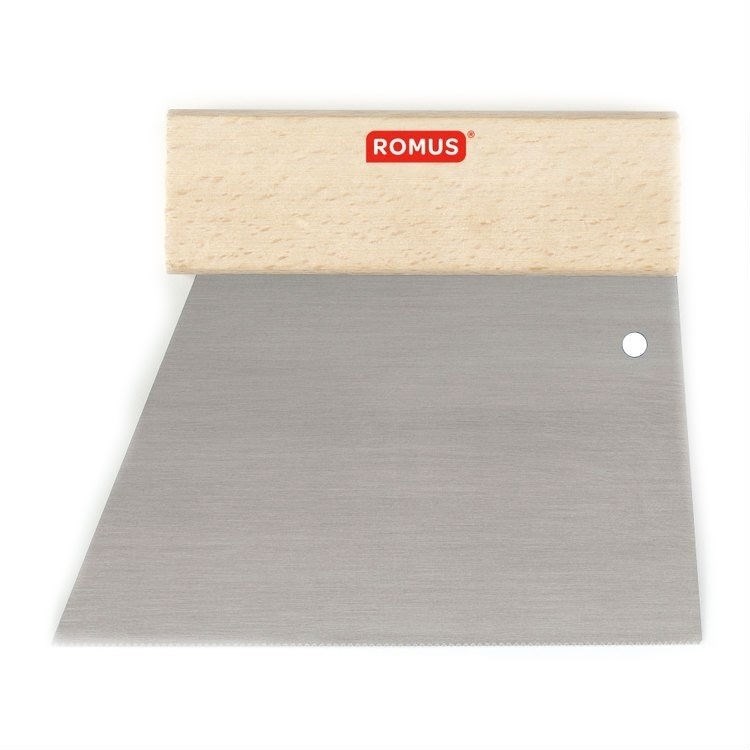Шпатель ROMUS 93083 предназначен для нанесения клея, 250мм, В1 с фиксированным вкладышем. Деревянная ручка. Стальное лезвие холодной обработки. Европейский стандарт зубьев.