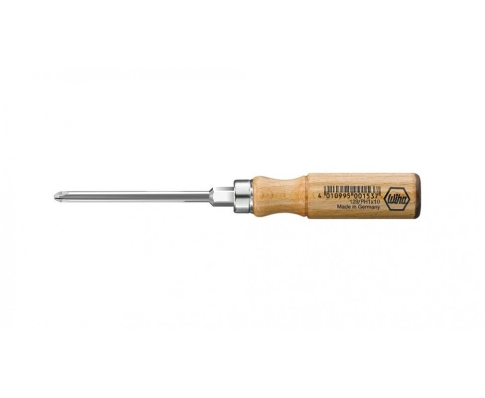 Столярная крестовая отвертка Wiha 129 PH 1x80 00057 с профилем Phillips из хромванадиевой стали и рукояткой из бука отлично подходит для повседневных работ в различных средах. Торец ручки защищен высококачественной кожаной крышкой. Используется в повседневных работах в промышленности и мастерских.