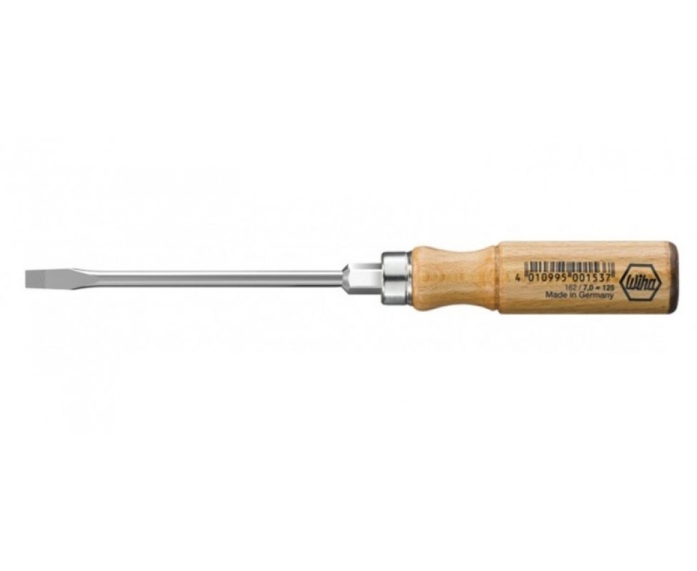 Столярная шлицевая отвертка Wiha 162 SL 10,0x175 00156 с профилем прямой шлиц из хромванадиевой стали и рукояткой из бука отлично подходит для повседневных работ в различных средах. Торец ручки защищен высококачественной кожаной крышкой. Используется в повседневных работах в промышленности и мастерских.
