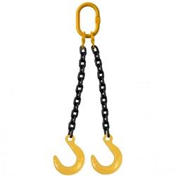 Строп цепной TOR 2СЦ г/п 5,3 т 1,1 м крюки с широким зевом 5,3 т состоит из двух ветвей, соединенных овальным звеном, с грузозахватными крюками на концах.