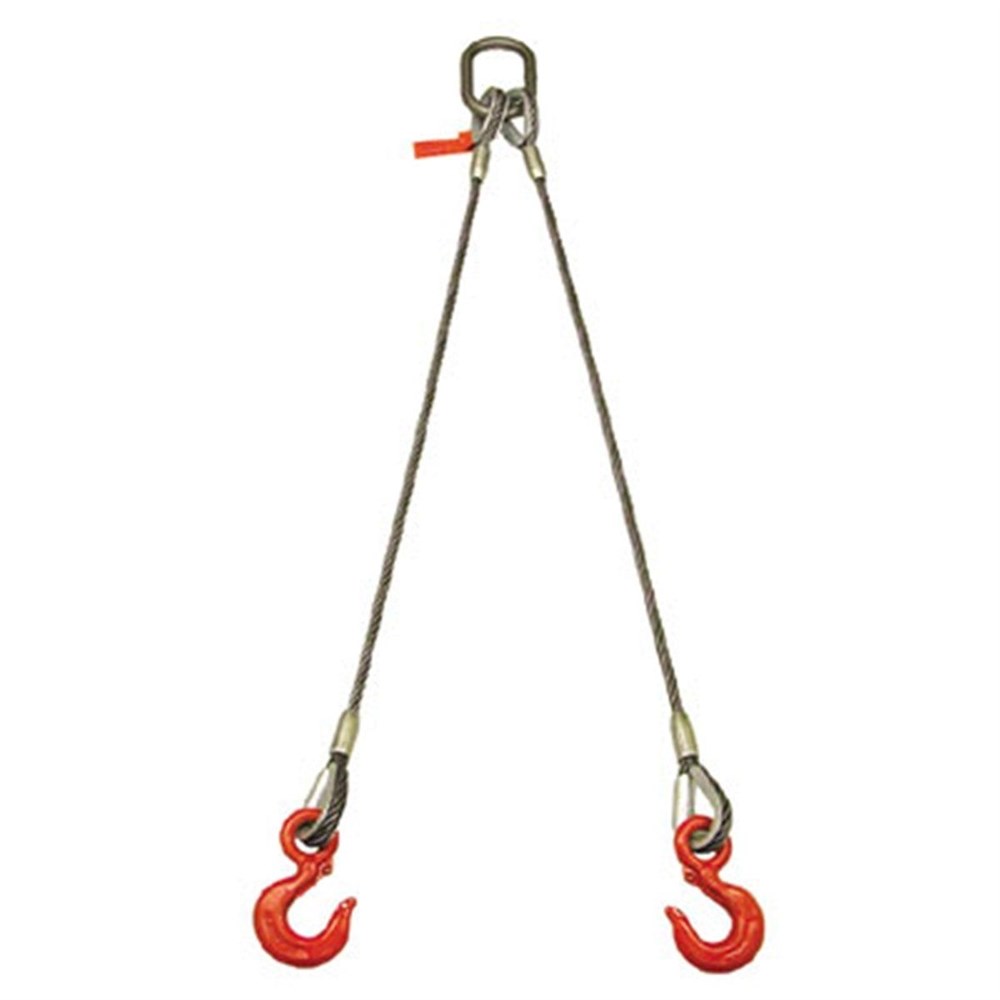 Канатный строп TOR 2СК г/п 8,0 т 4,5 м 1007683 чаще всего применяется при работе с длинными грузами для крепления в двух точках опоры. Обжим петель может происходить как с помощью зажима, так и методом заплетки. В петлю может быть установлен коуш для защиты от излома и стирания.