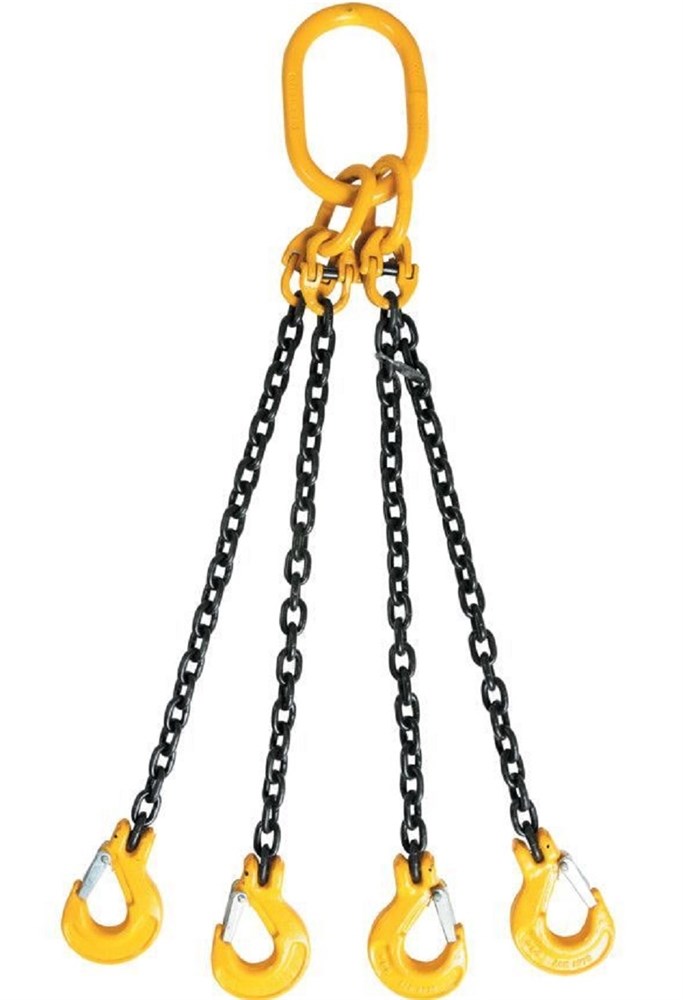 Цепной строп TOR 4СЦ г/п 26,5 т 7,5 м 1008103 состоит из 4-х цепных ветвей с крюками, связанных овальным звеном. Строп 4СЦ производится в соответствии с ТУ 3178-005-41037529-2016 (ТР ТС 010-2011).