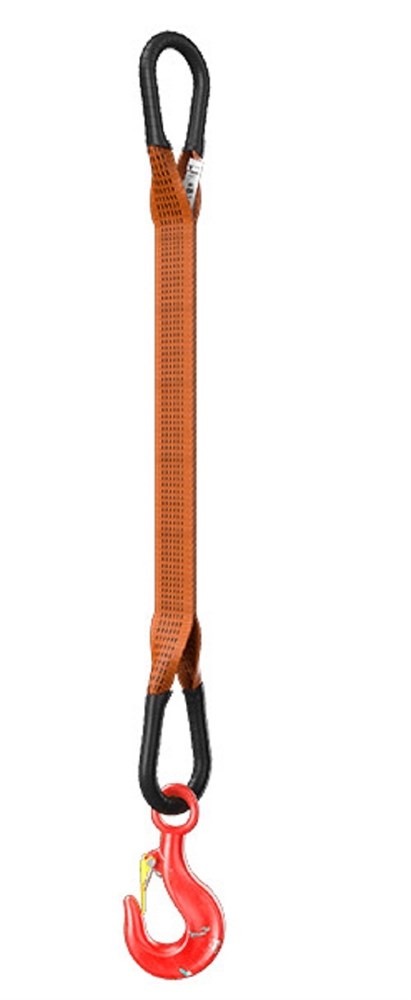 Текстильный строп TOR 1СТ 6,0 т 9,0 м 180 мм 1016216 состоит из 1 ветви с овальным звеном на 1 конце и крюком на другом.