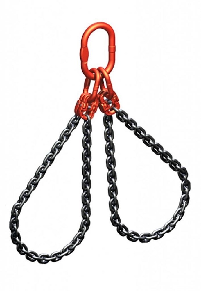 Цепной строп TOR 2СЦвз г/п 5,3 т 2,7 м 1024424 представляет собой металлическое кольцо с закрепленными на нем двумя замкнутыми ветвями из стальной цепи.