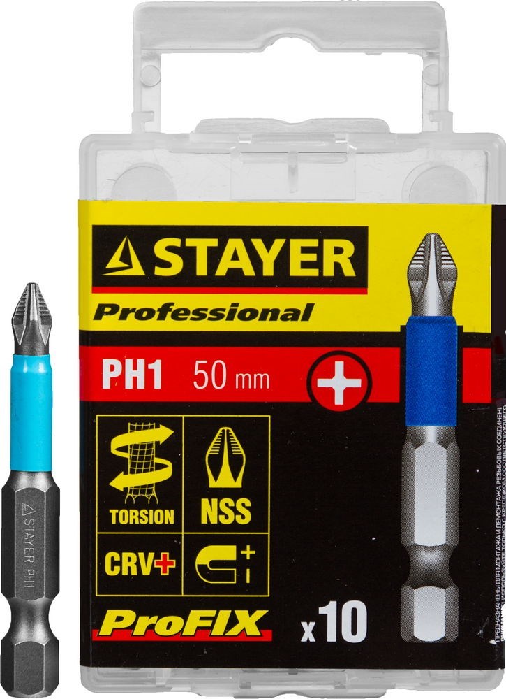 Торсионные биты Stayer Stayer "Professional-Profix" PH1 50мм 10шт 26203-1-50-10_z01