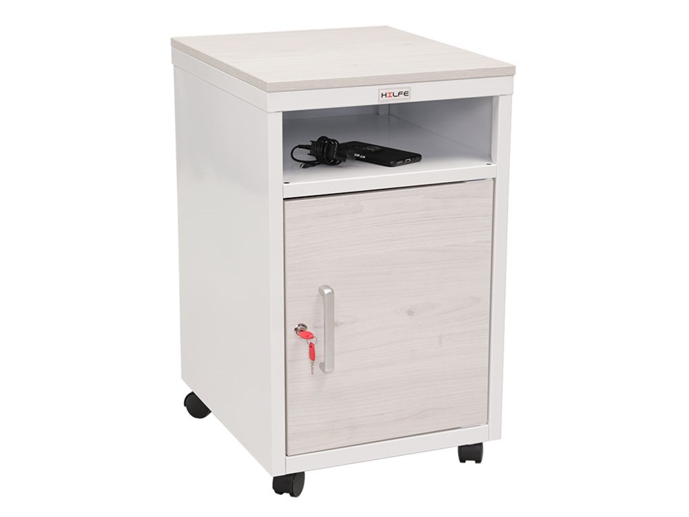 Тумба медицинская HILFE МД ТП-7 S26199404709 — надежное решение для хранения личных вещей, одежды и документов в больницах и медицинских учреждениях. Может использоваться как приставной элемент мебели у рабочего стола или кровати. Корпус изготовлен из металла, фасад и топ выполнены из ЛДСП с лазерной кромкой, обеспечивающей влагостойкость и термостойкость. Оснащена дверью с ключевым замком, эргономичной ручкой и колесами с стопорами для удобной мобильности.
