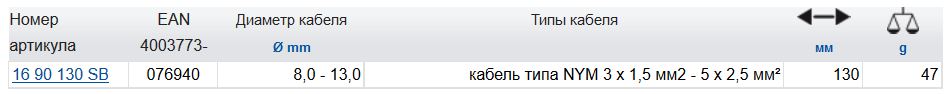 • Тип кабеля - Rundkabel 8 - 13 мм.