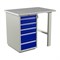 - Верстак окрашен порошковой краской, цвет покрытия корпуса серый шагрень (RAL 7038), лицевая панель дверцы тумбы – синий шагрень (RAL 5002).
