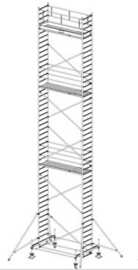 Алюминиевая вышка-тура Krause Stabilo 100 13,4м 751362 прошла проверку TUV, предельная нагрузка 200 кг/м2 (группа помостов 3) в соответствии с DIN EN 1004. Алюминиевое изделие универсального типа для рабочих высот до 14,00 м. В собранном состоянии вышка легко перемещается на базовой траверсе. Регулируемые по высоте ролики обеспечивают безопасность на неровных поверхностях. Платформы легко навешиваются между перекладинами (шаг - 25 см). Исключаются трудоемкие операции переналадки и демонтажа. При рабочей высоте изделия 7,40 м и более в комплект поставки включаются угловые опоры. Длина помоста: 3,00 м. Ширина помоста: 0,75 м.