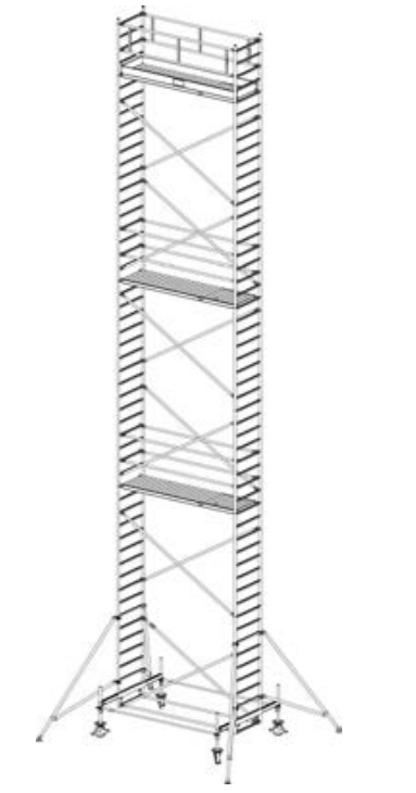 Алюминиевая вышка-тура Krause Stabilo 100 14,4м 751409 прошла проверку TUV, предельная нагрузка 200 кг/м2 (группа помостов 3) в соответствии с DIN EN 1004. Алюминиевое изделие универсального типа для рабочих высот до 14,00 м. В собранном состоянии вышка легко перемещается на базовой траверсе. Регулируемые по высоте ролики обеспечивают безопасность на неровных поверхностях. Платформы легко навешиваются между перекладинами (шаг - 25 см). Исключаются трудоемкие операции переналадки и демонтажа. При рабочей высоте изделия 7,40 м и более в комплект поставки включаются угловые опоры. Длина помоста: 3,00 м. Ширина помоста: 0,75 м.