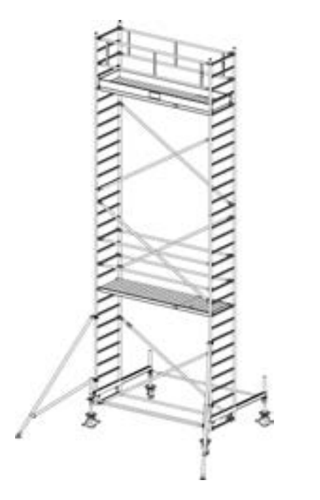 Алюминиевая вышка-тура Krause Stabilo 100 8,4м 751867 прошла проверку TUV, предельная нагрузка 200 кг/м2 (группа помостов 3) в соответствии с DIN EN 1004. Алюминиевое изделие универсального типа для рабочих высот до 14,00 м. В собранном состоянии вышка легко перемещается на базовой траверсе. Регулируемые по высоте ролики обеспечивают безопасность на неровных поверхностях. Платформы легко навешиваются между перекладинами (шаг - 25 см). Исключаются трудоемкие операции переналадки и демонтажа. При рабочей высоте изделия 7,40 м и более в комплект поставки включаются угловые опоры. Длина помоста: 3,00 м. Ширина помоста: 0,75 м.