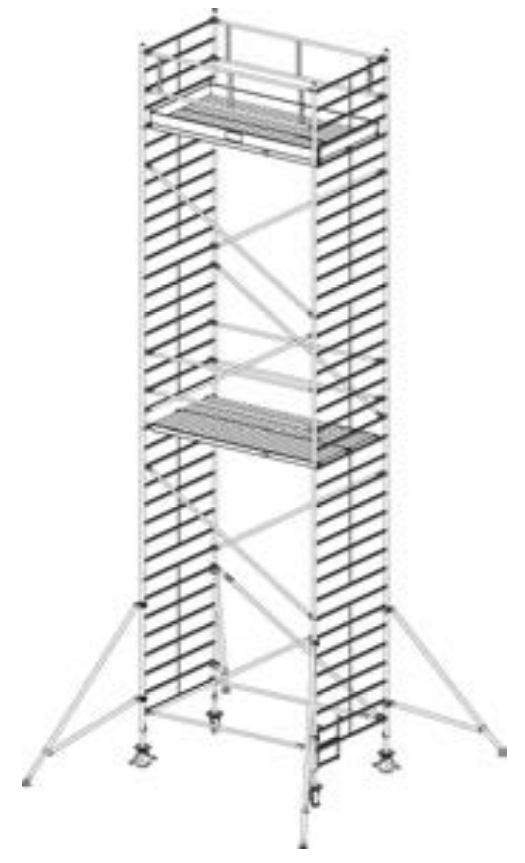 Алюминиевая вышка-тура Krause Stabilo 5000 10,3м 739100 прошла проверку TUV, предельная нагрузка 200 кг/м2 (группа помостов 3) в соответствии с DIN EN 1004. Идеально подходит для рабочих высот до 14,00 м. Платформы легко навешиваются между перекладинами (шаг - 25 см). Исключаются трудоемкие операции переналадки и демонтажа. Площадка размером около 4,00 м2 безопасна и достаточно просторна для людей и материалов. Удобные вертикальные рамы легко монтируются одним человеком, профилированные перекладины обеспечивают безопасность подъема и спуска. Угловые опоры входят в комплект поставки. Длина помоста: 2,00 м. Ширина помоста: 1,50 м.