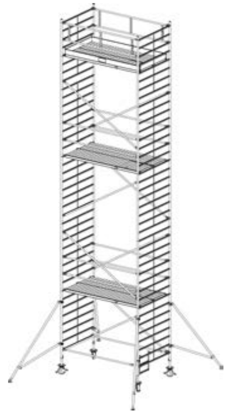Алюминиевая вышка-тура Krause Stabilo 5000 11,3м 759115 прошла проверку TUV, предельная нагрузка 200 кг/м2 (группа помостов 3) в соответствии с DIN EN 1004. Идеально подходит для рабочих высот до 14,00 м. Платформы легко навешиваются между перекладинами (шаг - 25 см). Исключаются трудоемкие операции переналадки и демонтажа. Площадка размером около 4,00 м2 безопасна и достаточно просторна для людей и материалов. Удобные вертикальные рамы легко монтируются одним человеком, профилированные перекладины обеспечивают безопасность подъема и спуска. Угловые опоры входят в комплект поставки. Длина помоста: 3,00 м. Ширина помоста: 1,50 м.