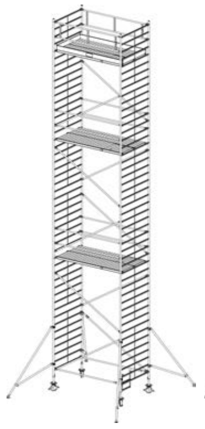 Алюминиевая вышка-тура Krause Stabilo 5000 13,3м 759139 прошла проверку TUV, предельная нагрузка 200 кг/м2 (группа помостов 3) в соответствии с DIN EN 1004. Идеально подходит для рабочих высот до 14,00 м. Платформы легко навешиваются между перекладинами (шаг - 25 см). Исключаются трудоемкие операции переналадки и демонтажа. Площадка размером около 4,00 м2 безопасна и достаточно просторна для людей и материалов. Удобные вертикальные рамы легко монтируются одним человеком, профилированные перекладины обеспечивают безопасность подъема и спуска. Угловые опоры входят в комплект поставки. Длина помоста: 3,00 м. Ширина помоста: 1,50 м.