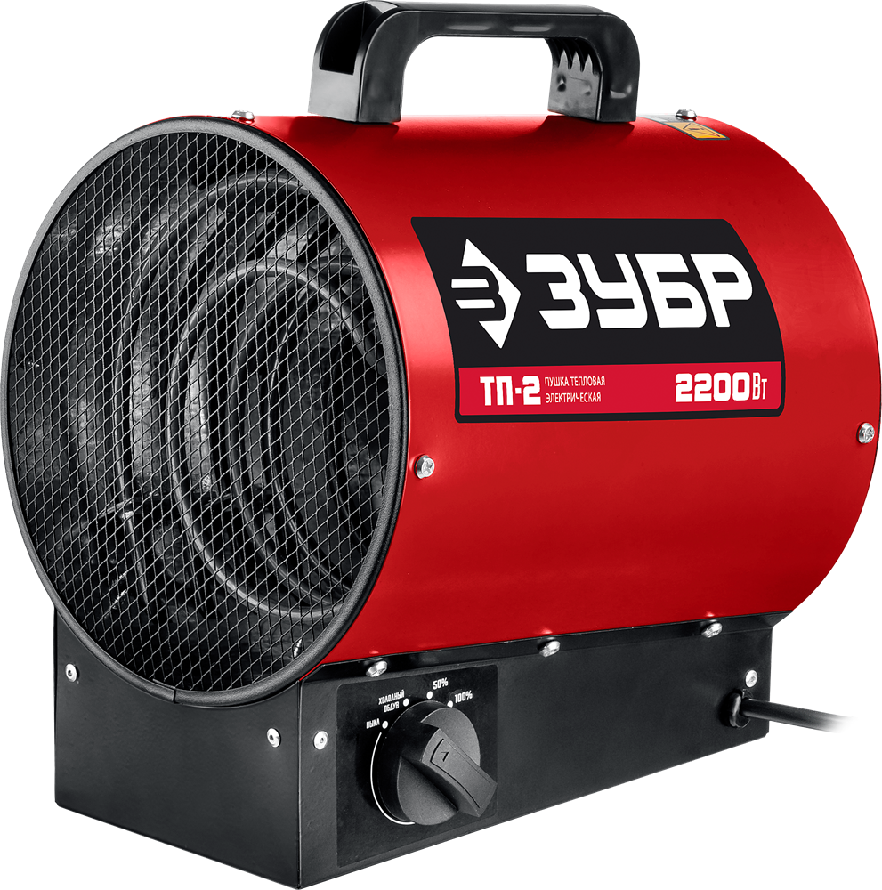 Электрическая тепловая пушка Зубр ТП-2 - компактный и легкий обогреватель в круглом корпусе для квартиры, загородного дома, мастерских гаражей и т.д. Большая площадь ТЭНов и эффективный обдув способствуют более быстрому нагреву помещения. Конструктивные меры безопасности (дополнительный защитный кожух, термопредохранитель, заземление корпуса) защищают Вас и изделие при нештатных ситуациях. ЗУБР - тепло и уют Вашего дома